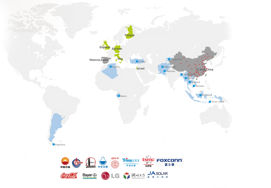 江華集團業務涉及石油化工、重工業、冶金礦業、電力、制藥、新能源等各行業,業務遍及全國各大城市,并已承接了20多個海外環(huán)保治理項目,遍及孟加拉、土耳其、俄羅斯緬甸等國,同時開發(fā)了越南、印度、泰國、斯里蘭卡等國際環(huán)保市場,長期與美國、法國芬蘭、瑞典、德國、日本、韓國、以色列等國外知名環(huán)保公司保持緊密合作關系。